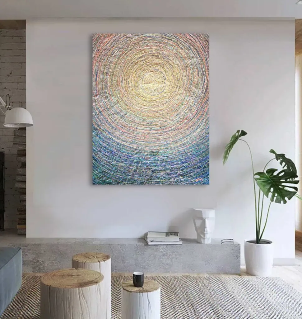 “Eternal Glow” brings a sense of calm and wonder to any space, making it perfect for interiors focused on meditation, creativity, or relaxation. This collection invites viewers to lose themselves in the soothing flow of light, a reminder of life’s endless brilliance and serenity.