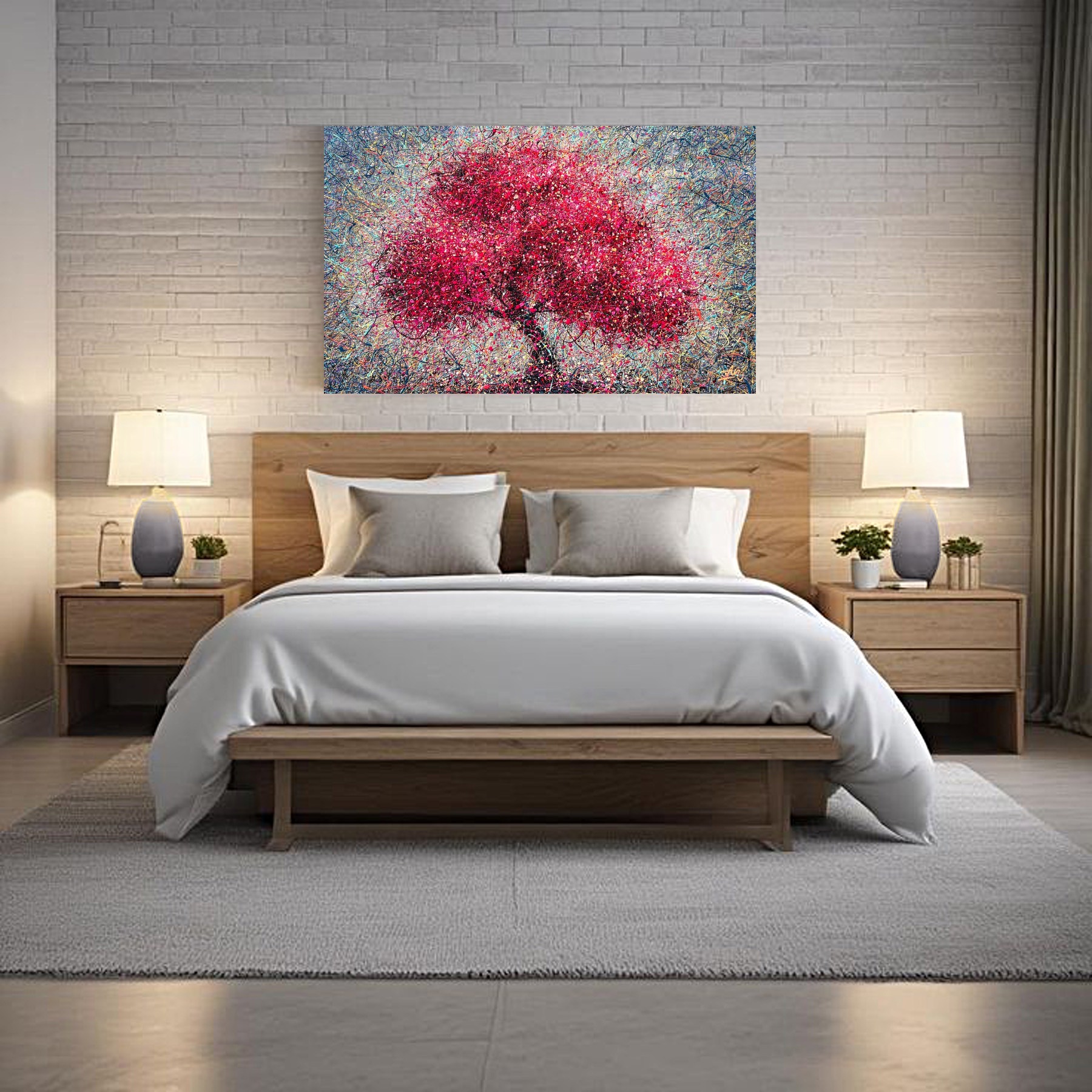 As the evening skies began to darken, the lone tree stood proudly, cloaked in crimson glory. Each red strand, a wish, each shimmer, a dream fulfilled. It whispered to every passerby, “Even in the darkest of nights, you can radiate.” This tree is a reminder that no matter where you are, your inner light can ignite a spark of hope for yourself and those around you.