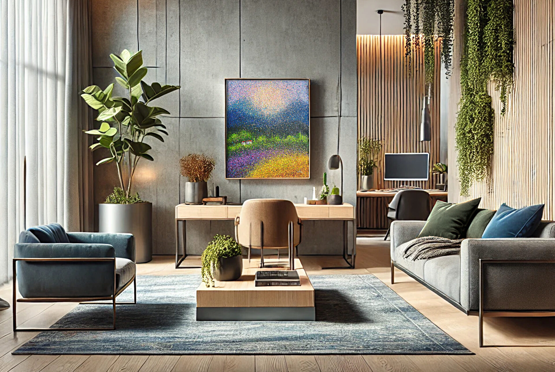 This original painting is created using a unique variation of pointillism — energetic splashes that mimic light vibration in the air above a sunlit summer field. The technique gives the work a sense of depth, joy, and movement, connecting the viewer to nature through sensation.